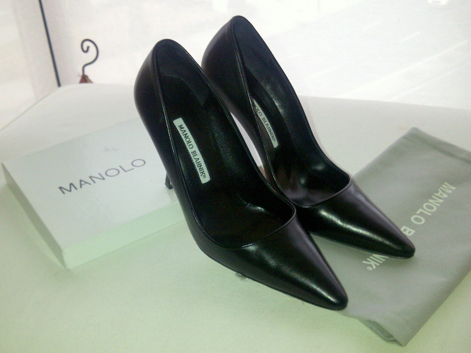 Fueron un regalo de mi novio, además los compramos en Nueva York en 31 West 54th Street, New York, NY 10019. La boutique de Manolo Blahnik de NY es lo mas parecido a un museo del zapato, a una exposición con modelos fabulosos. Me atendió una chica, que era de Brooklyn, muy atenta que estuvo sacando zapatos y números hasta que me decidí por estos… unos clásicos de salón y tacón de 10 cm modelo «Tuccio».