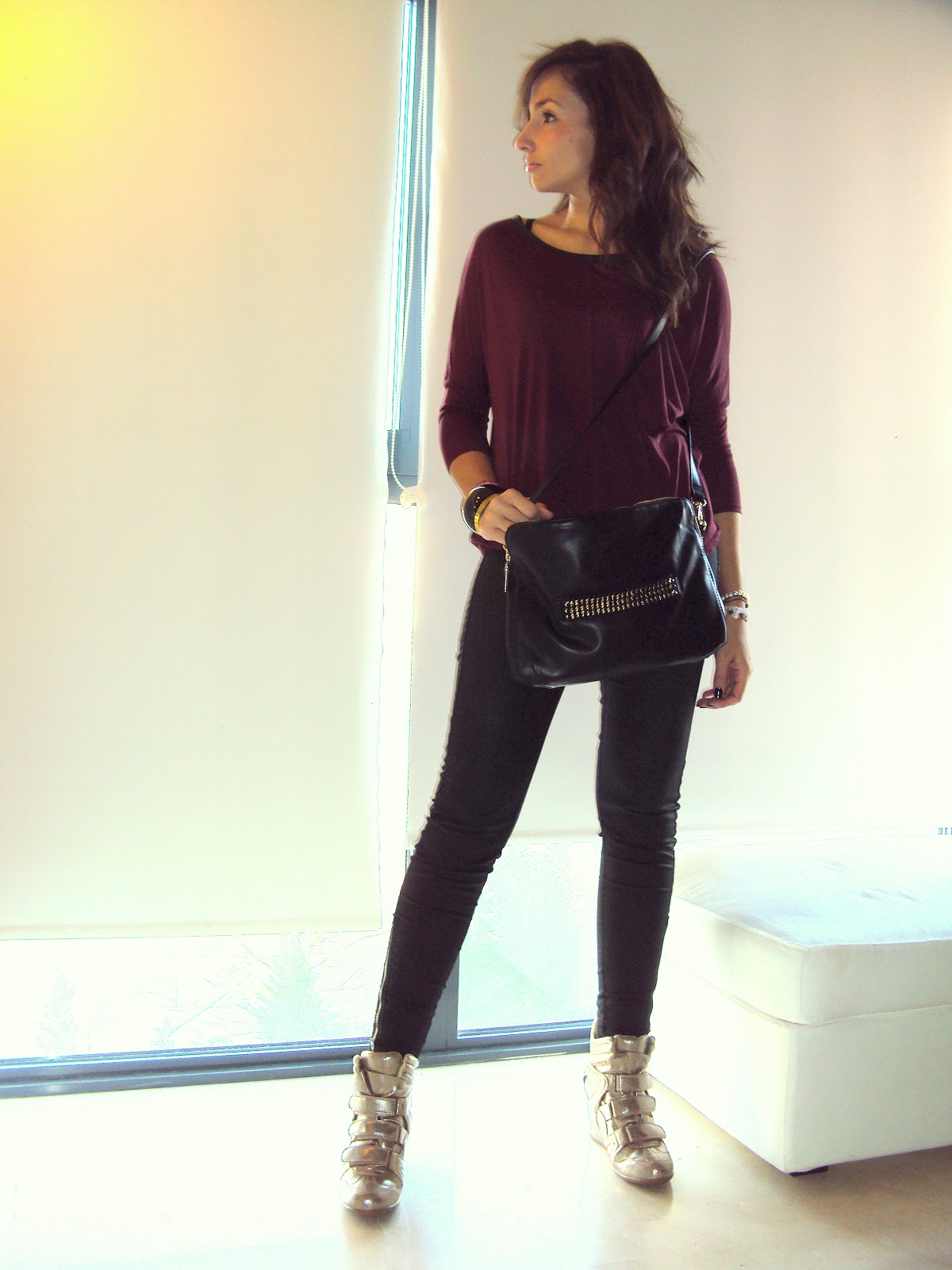 Messenger bag: Zara (de esta temporada, ya lo habréis visto en otra entrada). - Pulseras: una negra con bordes dorados de Mango y 3 de