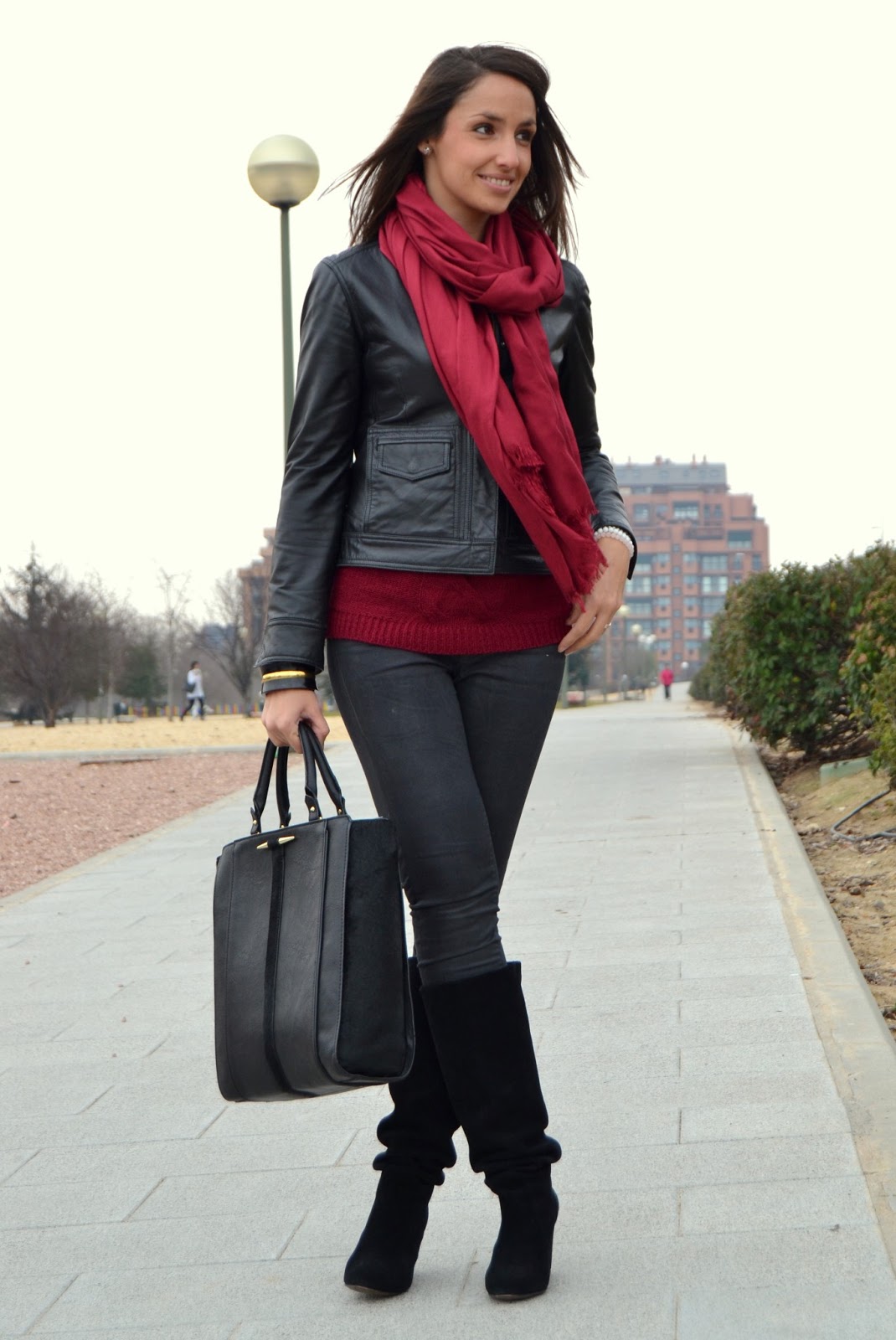 unos pitillos negros de Mango, una chaqueta de piel negra de Massimo Dutti y