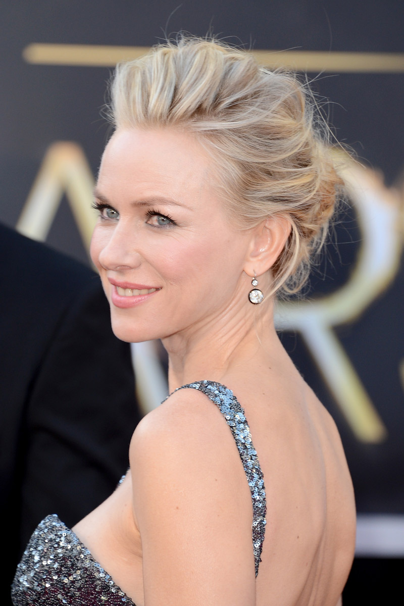 con bucles, el rouge de labios y eyeliner. Las joyas elegidas fueron unos