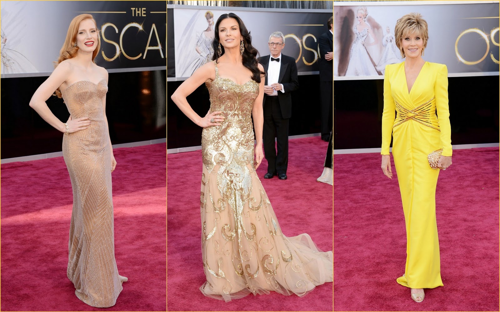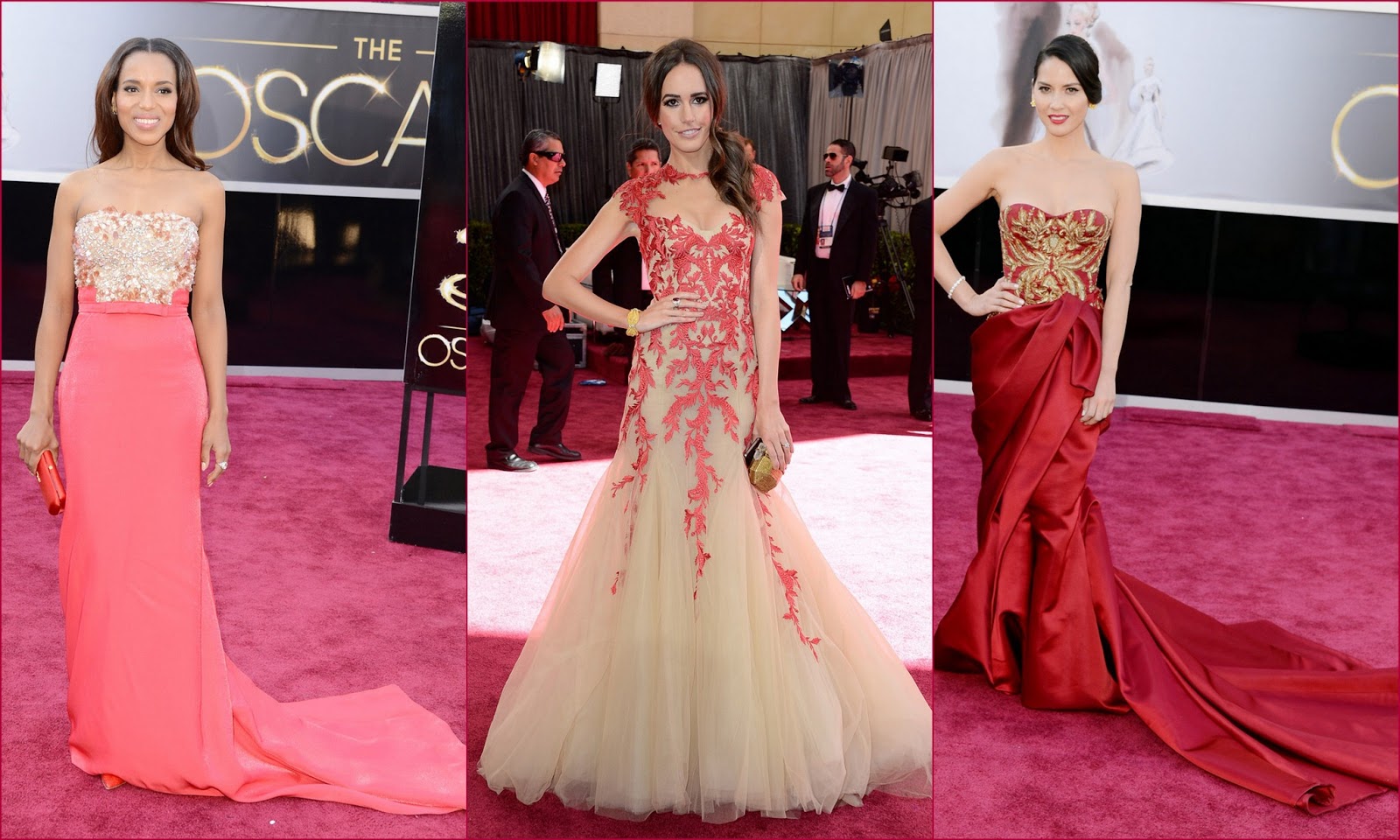 estos Oscars 2013, son vestidos rojos con pedrerías o estampaciones doradas o
