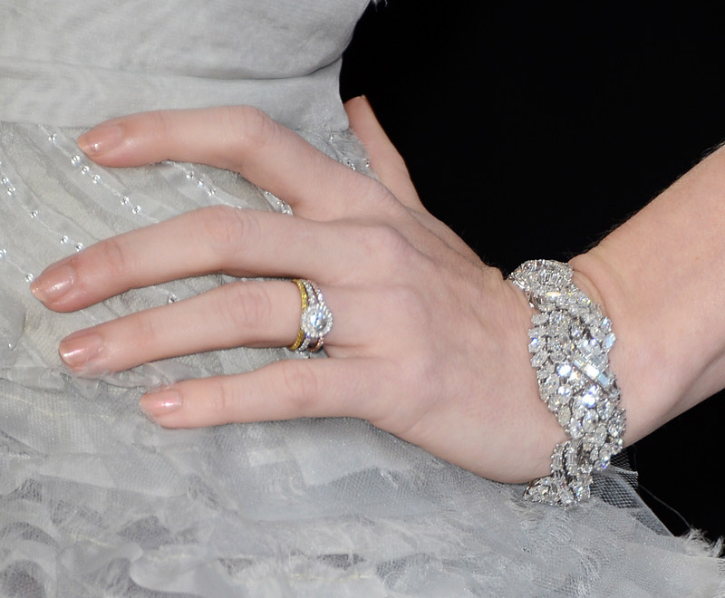 próxima película. Como joyas, llevó dos maravillosos brazaletes de platino y