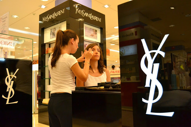 Como ya os adelanté hace unos días, en mi página de facebook, el pasado puente de mayo estuve por Málaga, y fui a que me maquillaran al corner de Yves Saint Laurent de El corte Inglés de Mijas Costa, ya que iba a asistir a un evento muy especial, la boda de unos amigos. Y todo fue sobre ruedas, tenia cita a las 10:00h y a las 10:40h estaba lista y guapísima! Y no hace falta que os diga pero el maquillaje me duró a la perfección durante todo el día y eso que hizo un calor bastante considerable. Me encantó la experiencia y sin duda volveré siempre que tenga la oportunidad.