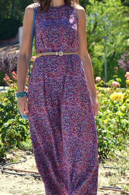 Buenos días! Hoy estoy muy contenta porque os voy a enseñar un vestido super bonito y creo que unas fotos también muy bonitas. Es un vestido largo de seda con un estampado como de pequeñas pinceladas, aunque de lejos parecen flores. Este vestido es ideal para esta época del año, si el tiempo nos lo permite…