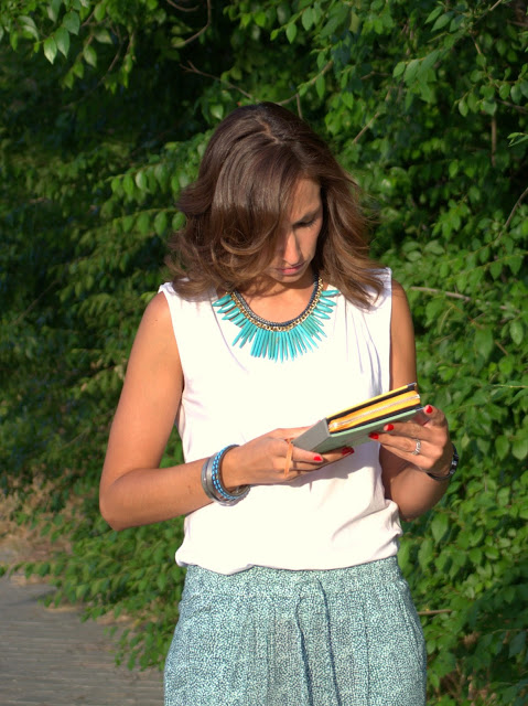 Para darle un toque diferente a este look, llevo bolso-libro de mano que es súper ideal y de lo más trendy.