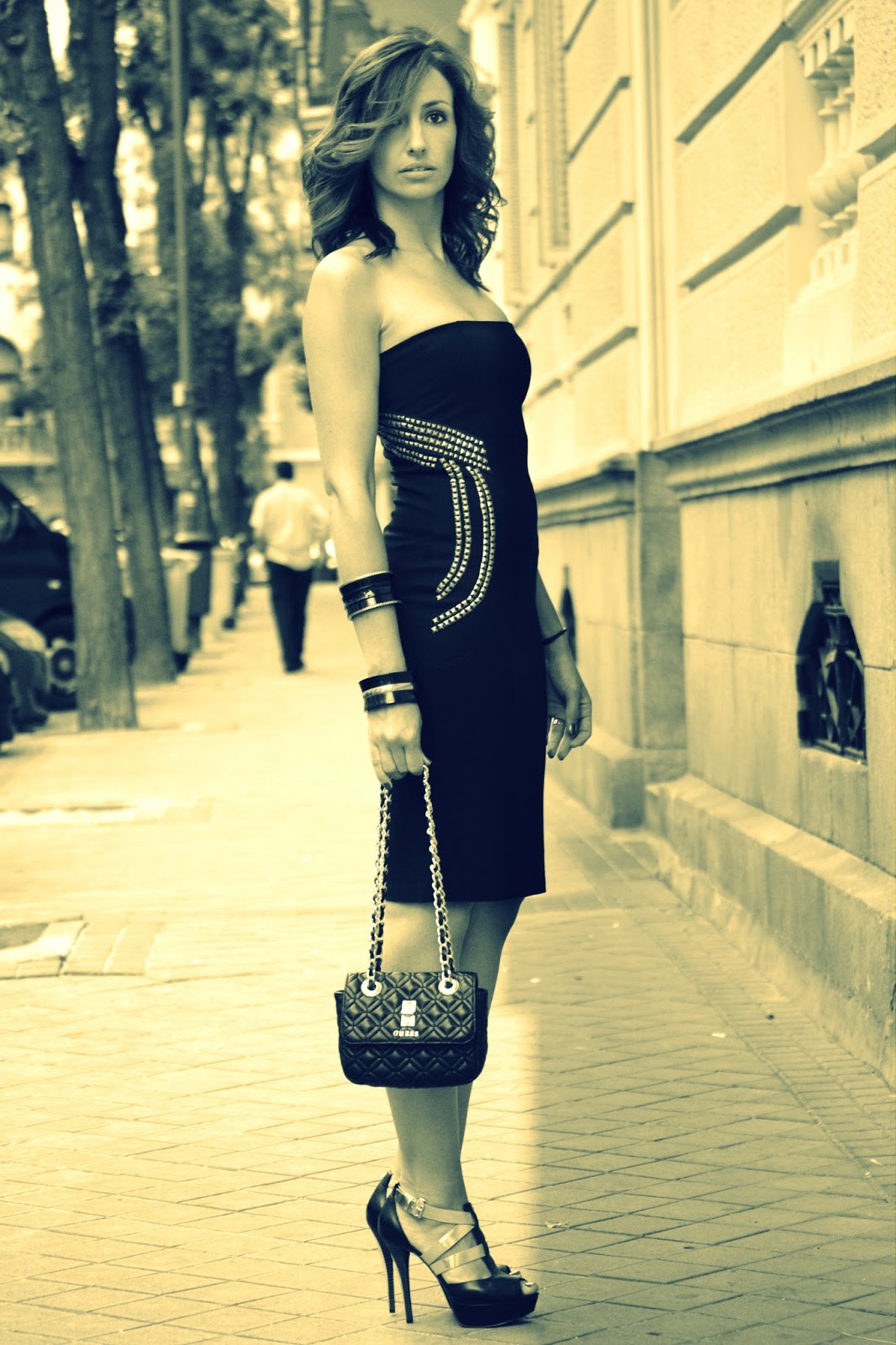 Hola a todos! Que tal va la semana? Pues yo ésta más tranquila ya que la semana pasada empecé con las salidas el martes y es que fue la fiesta de French Tuesdays, y además, con la temática Rock & Chic por eso elegí este fantástico vestido negro palabra de honor hasta la rodilla con tachas doradas, bolso y zapatos de similares características, todo de Guess, me pareció un look ideal para la temática de la fiesta, por cierto, lo pasamos genial!!