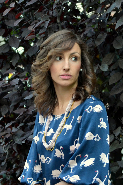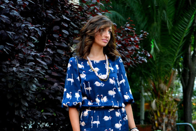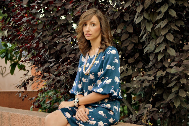 Y seguimos con la temática de los animalitos, hoy toca cisnes. El estampado de este vestido de Dolores Promesa me parece sencillamente una pasada, es elegante, a la vez que sencillo pero llamativo, no se, lo vi y me enamoré 🙂 Y para combinarlo me puse mis peeptoes rosa palo de Nine West que ya habéis visto en alguna otra ocasión, un colgante de Triana by c en los mismos tonos y un bolsito de Strena.