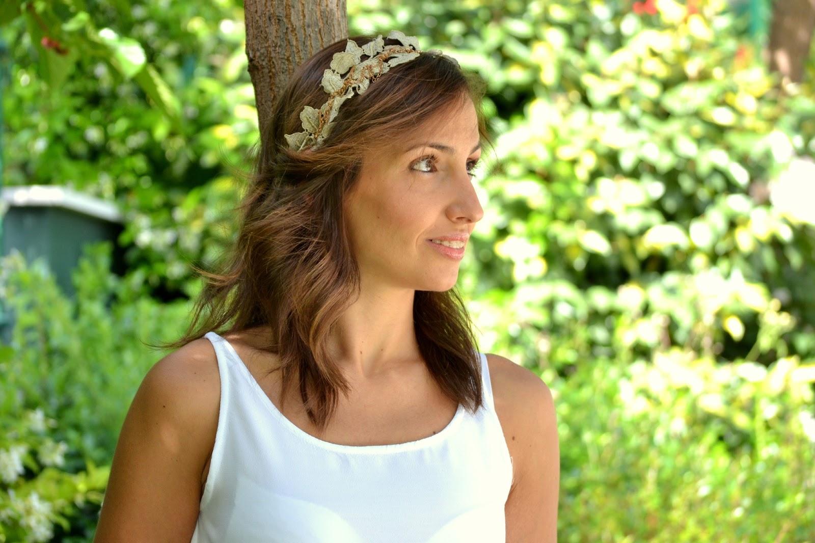 De Sandra Palomar, diadema de hojas, muy versátil no necesitas una ocasión especial para ponértela.