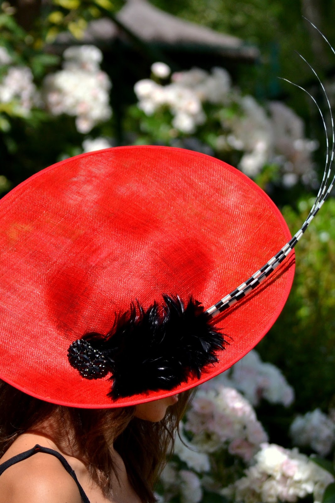 Este primero es de Gamusina Tocados, en rojo con detalles en negro.