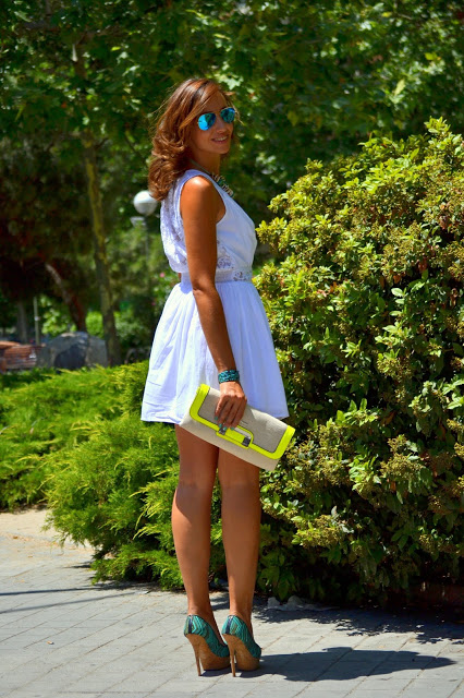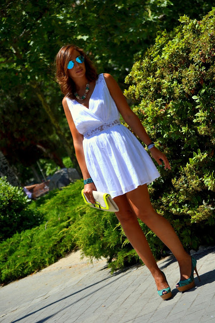 julio 18, 2013Me gusta mucho el cambio que le has dado al vestido blanco combinándolo con turquesa y flúor. Sencilla pero chic! Muy guapa Silvia!