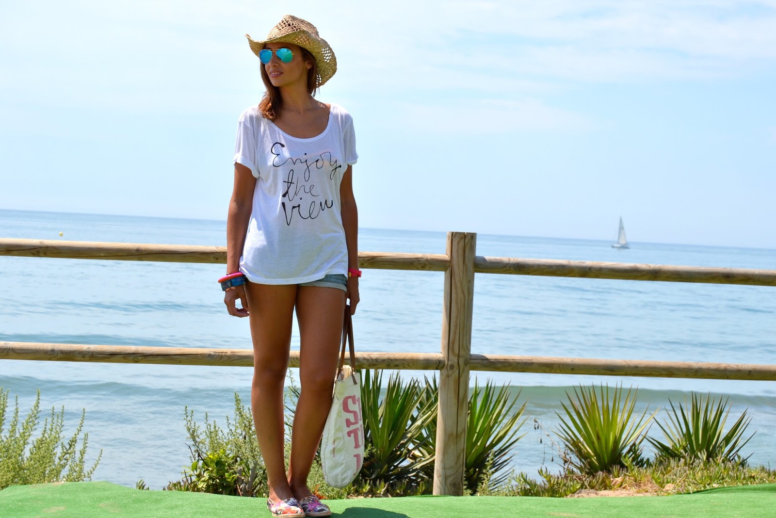 This summer we are seeing a lot of T-shirt with messages and this one is very special, it has been a present of my brother in law, he brings it from Victoria´s Secret in New York. I love this trademark! And as you see is very esasy to match, just a shorts and my espadrilles by Miss Hamptons this time with a very summery flower print. If you want to see some other looks with my summer espadrilles here in camouflage print and here in golden glitter. I choosed this look last weekend for going to the beach at Marbella, we must seize this last weekends of summer.