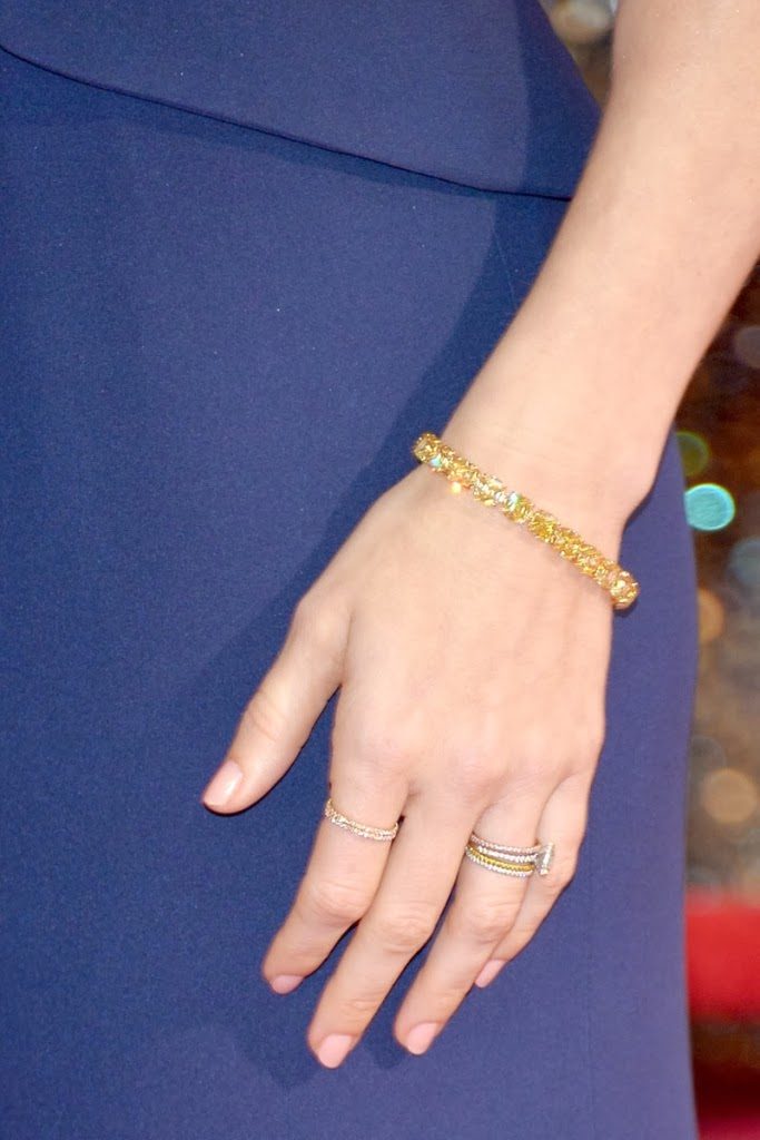 Y que decir de sus joyas de Tiffany & Co que eligió para decorar su muñeca izquierda y para sus maravillosos pendientes largos.