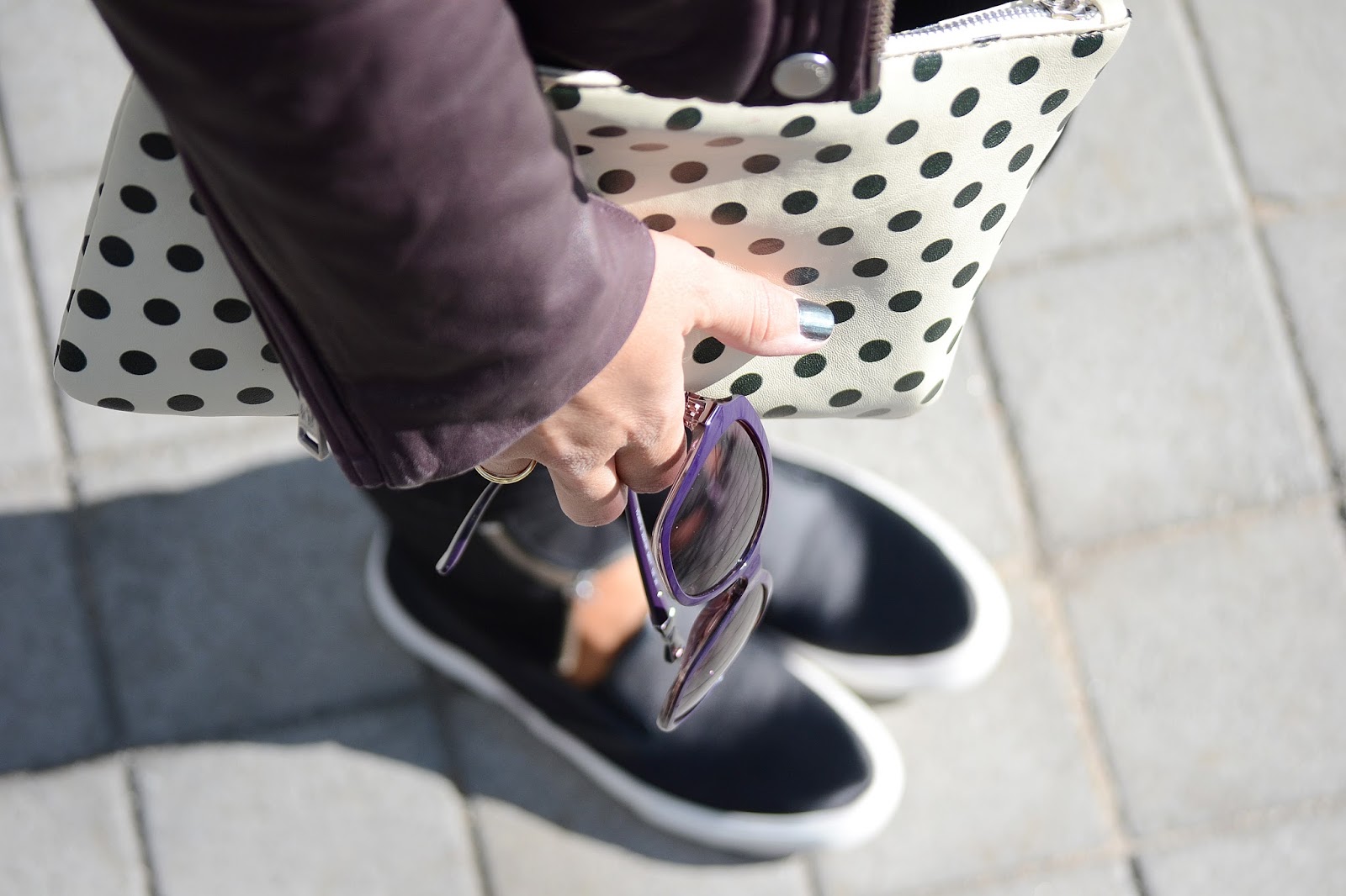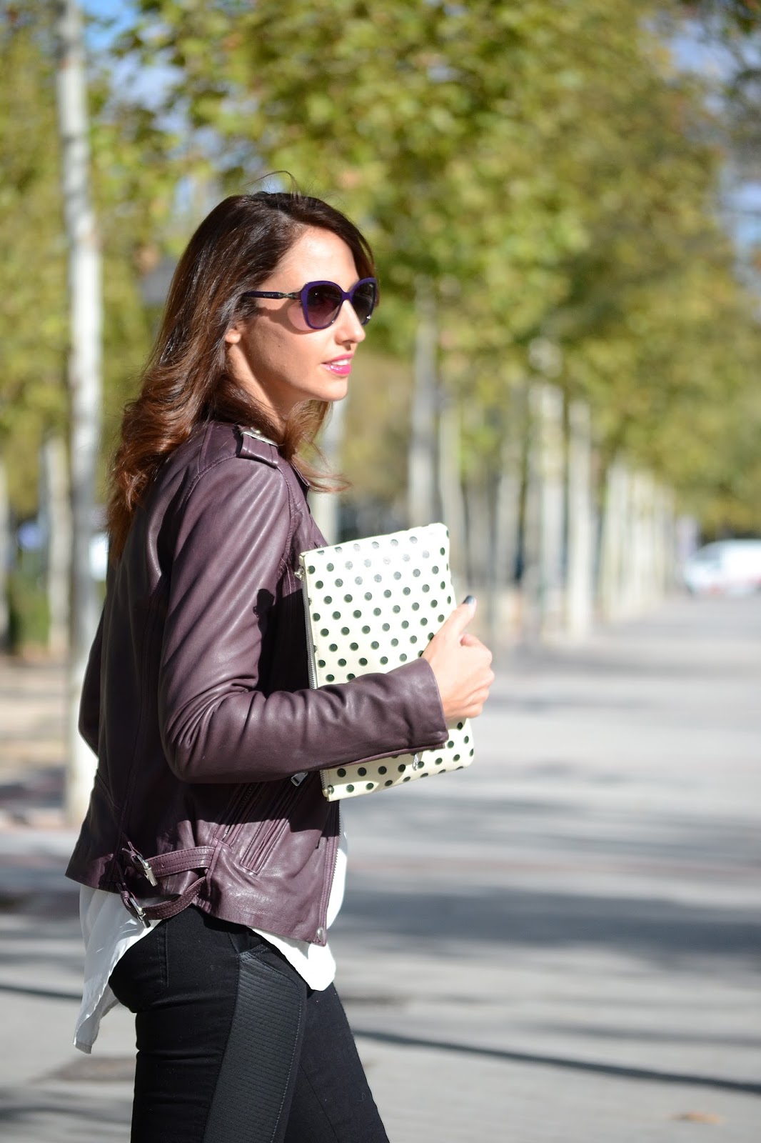 Este look que os enseño hoy es el que llevé ayer para hacer unas compras por Fuencarral y luego ir a la presentación de la nueva línea de relojes de Pepe Jeans. Un look muy sport y casual con mi nueva biker morada de Rich & Royal, además es muy calentita por el forro que lleva. La llevé con una blusa blanca de la misma marca y unos jeans negros de Supertrash, ambos son básicos en mi fondo de armario. Las sneakers satinadas de Mango, cartera de mano de Maxim Lumier, un toque un tanto retro para este outfit y unas gafas de sol de Vogue Eyewear que ya me habéis visto en alguna ocasión y con esta biker quedan perfecta.