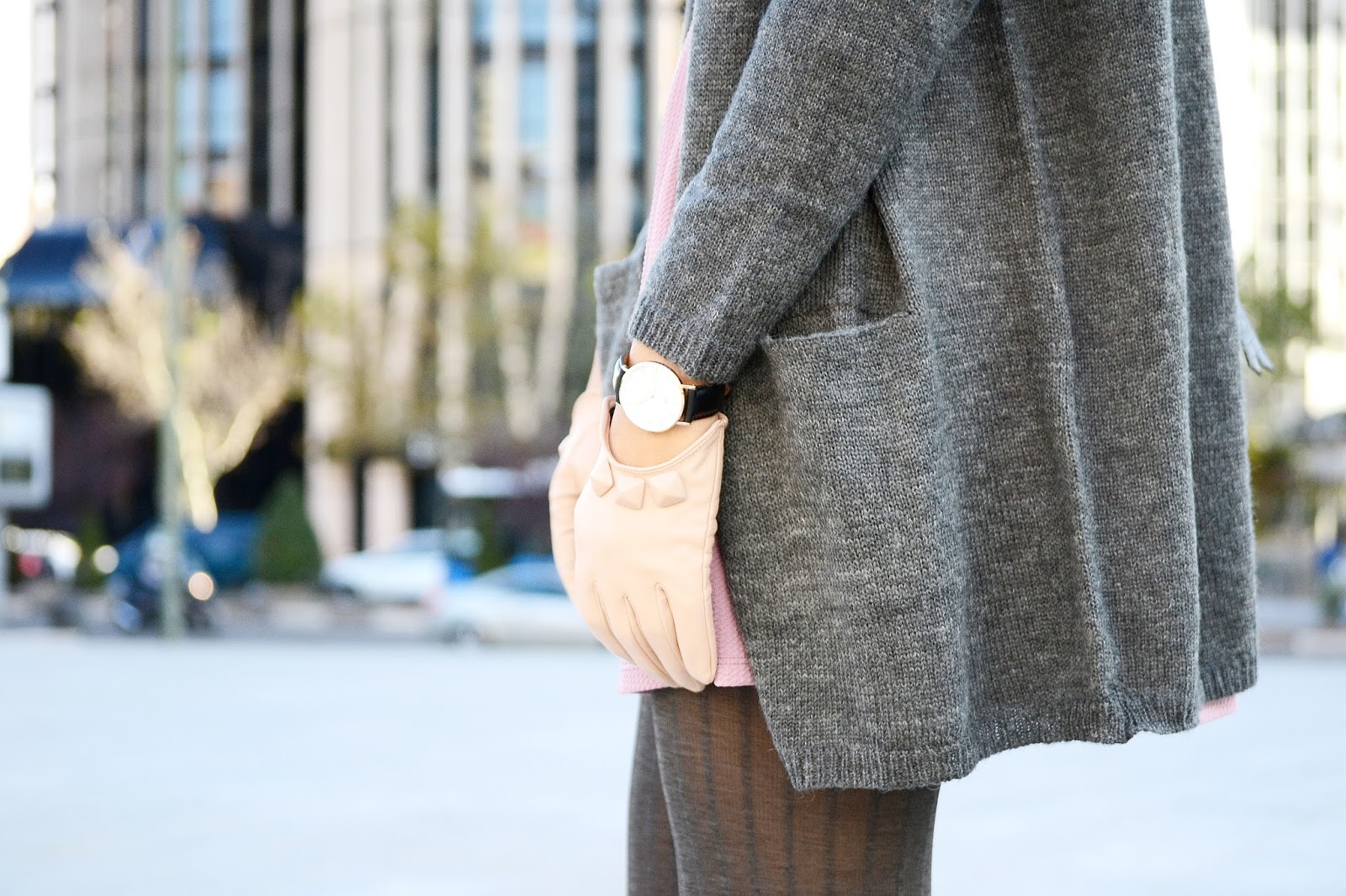 Las fotos del post de hoy las hicimos el viernes aún en Madrid, llevo mi nuevo vestido de Le Mien color malva. Para combinarlo elegí tonos grises, tendencia siempre en otoño. Un maxi cardigan de Mango, este año son un imprescindible en mi fondo de armario, medias de Calzedonia, sombrero de BDBA, bolso bowling de Fun & Basic y botas de Stradivarius.