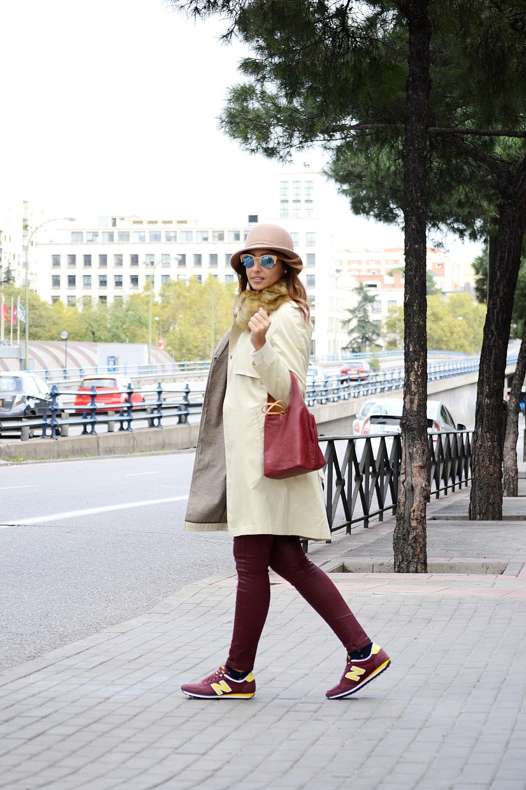 The rest of the outfit, a jersey and pants from Mango, New Balance, hat from Zara, bag from Casabras, small but enough for all you need! The sunnies are from Woodys Barcelona, via Optichic, they are wood made with mirrored blue glasses in a vintage style, very trendy! What do you think about this look? Will you wear your trench with a waistcoat?