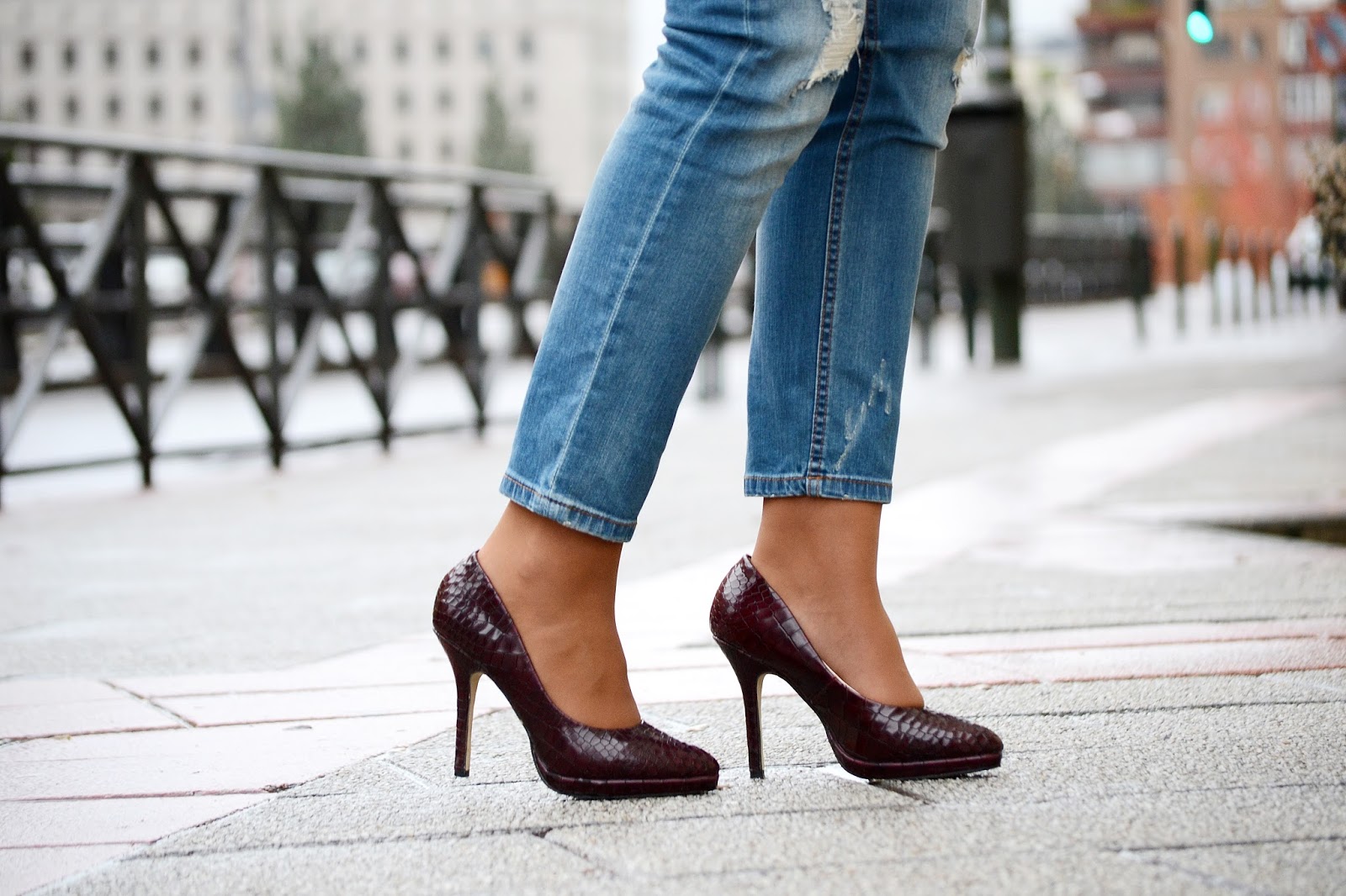 El look elegido para la ocasión fue algo sencillo pero siguiendo una de las tendencias de la temporada, el abrigo camel, este de Mango. Lo combiné con un sweater y bolso del mismo tono, de Zara, unos boyfriends de mango, y para completar este look quería algo que rompiera con el monotono, unos zapatos de tacón color burdeos, de Menbur. Los complementos, pulsera y anillo de Kuir me up, collar de strass de Mango y mis maravillosas gafas de sol de Dolce & Gabbana, de Optichic.