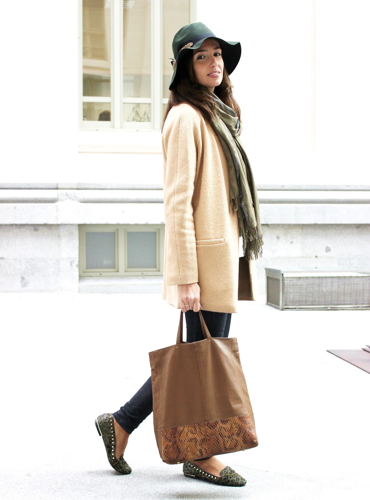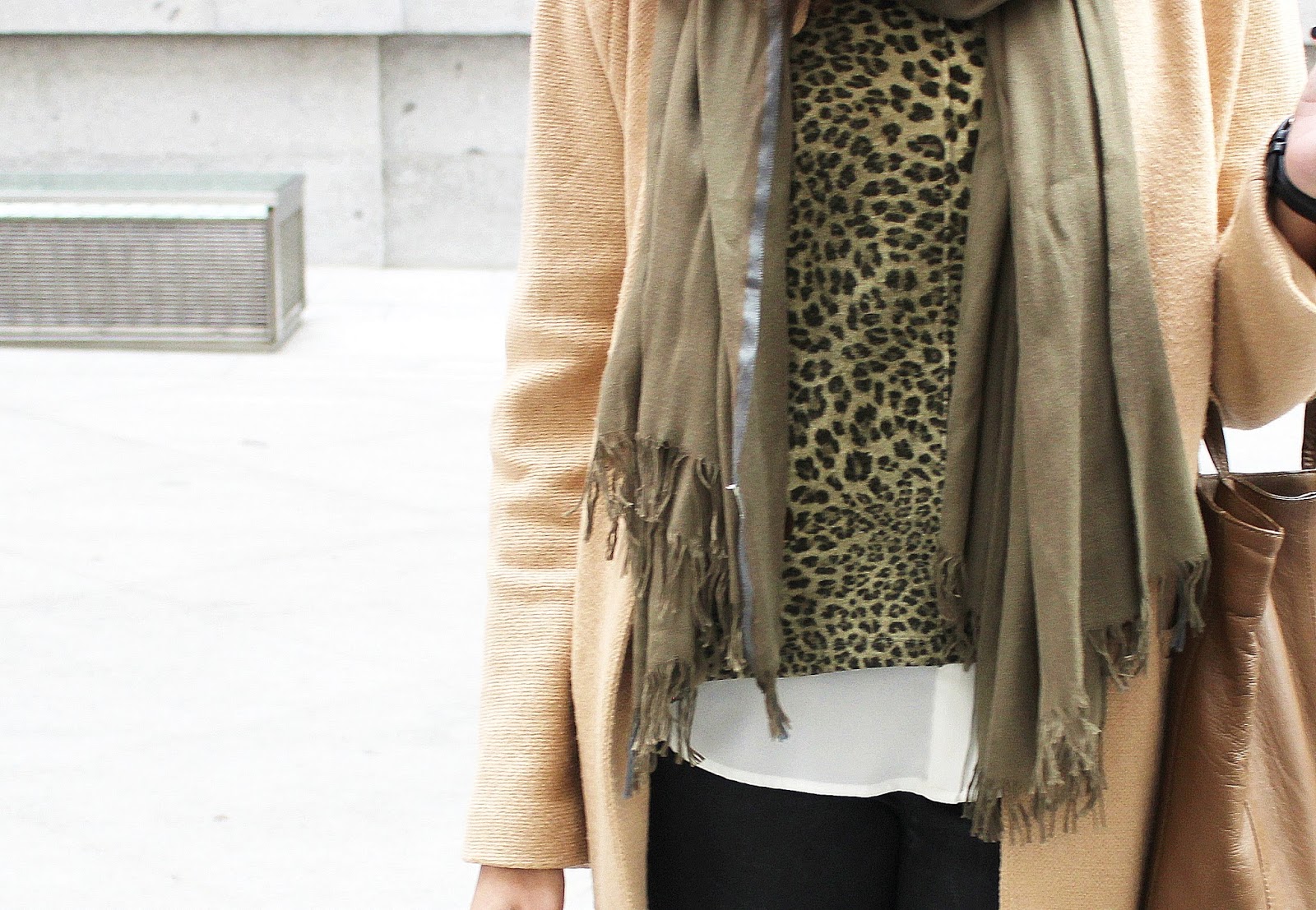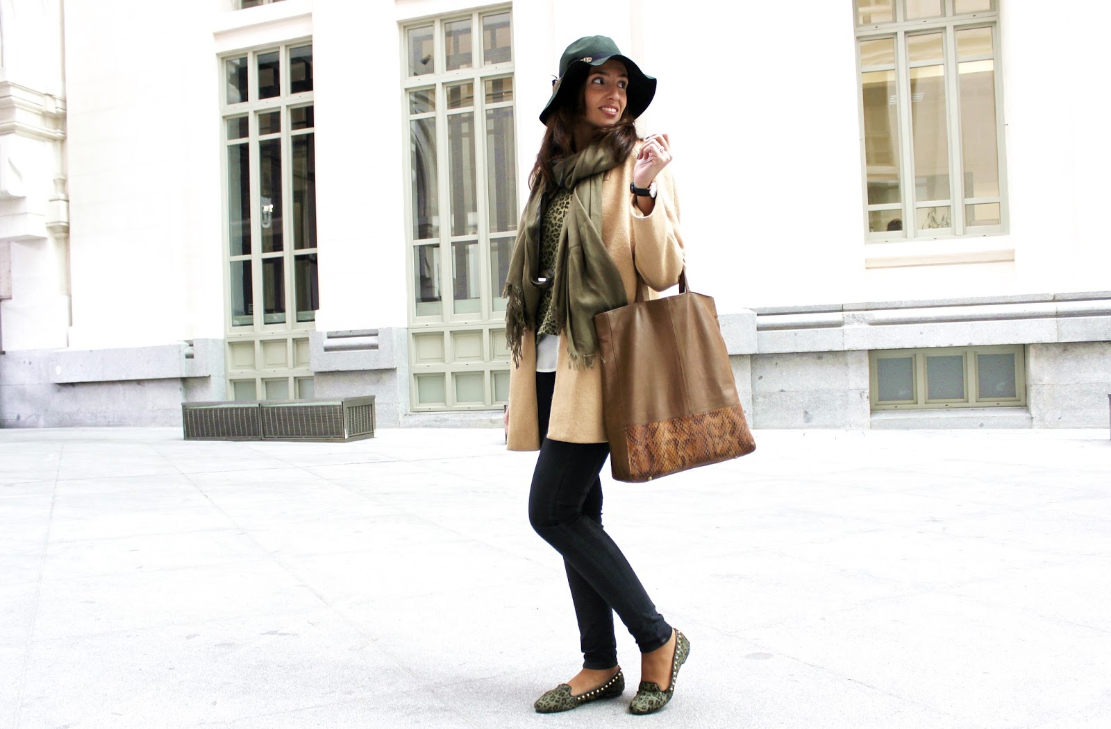 Este día estaba un pelín malita, ya que llevaba una semana griposa y con fiebre, pero hice lo que pude 🙂 Mi look fue casual y muy calentito. Llevé abrigo camel, pantalón y sombrero de Mango, slippers y jersey con print animal de Zara y bolso de Day & day.