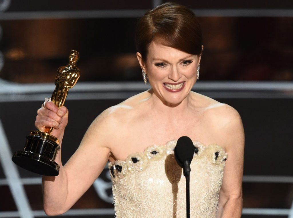 Que mejor forma de empezar a analizar los looks de las actrices que comenzando por la ganadora al Oscar a Mejor Actriz, Julianne Moore, por su interpretación en Still Alice. Para este momento tan especial, la actriz eligió un Chanel hecho a medida especialmente para ella. Las joyas son firmadas por Chopard.