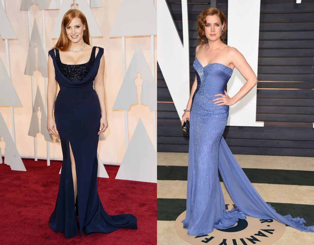Las grandes derrotadas, sin nominación, fueron Jessica Chastain (galardonada con el premio honorifico en los Critics Choice Awards 2015) que asistió a la gala con un diseño de Givenchy, y Amy Adams, que con este Atelier Versace repite color en su vestido, con el que ganó el Globo de Oro 2015 a la Mejor Actriz de Comedia, para la fiesta Vanity Fair, posterior a la gala de los Oscars.