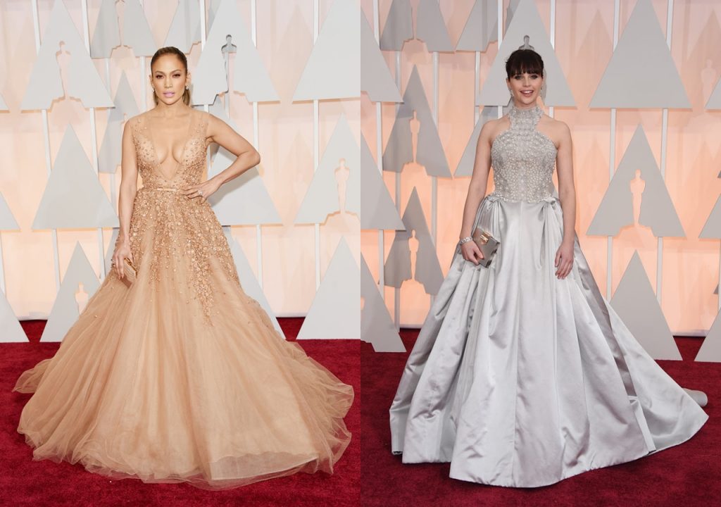 Los vestidos que menos me han gustado sobre la red carpet han sido los de aire principesco, pero con muy poco gusto, como el Elie Saab de Jennifer Lopez, y el Alexander McQueen de Felicity Jones, nominada a Mejor Actriz por su interpretación en The Theory of Everything.