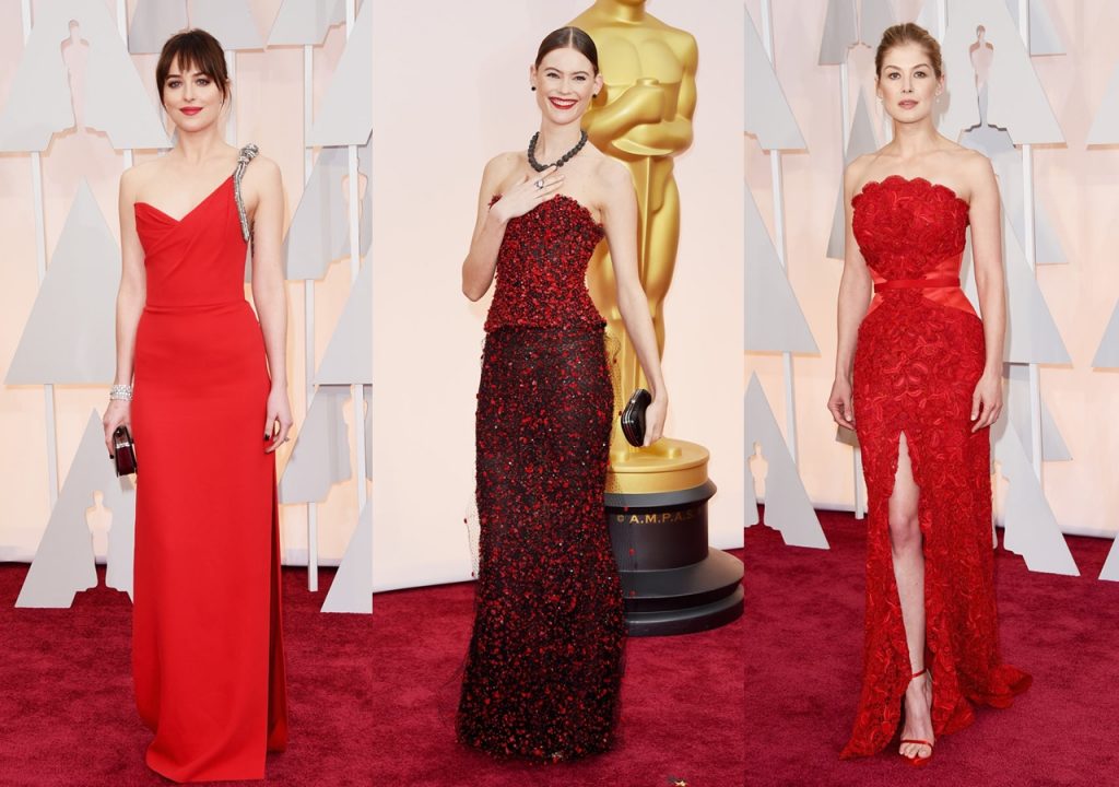 Otra de las actrices nominadas a Mejor Actriz, Rosamund Pike, por su interpretación en Gone Girl, eligió el rojo para su vestido, firmado por Givenchy. También eligieron el rojo: