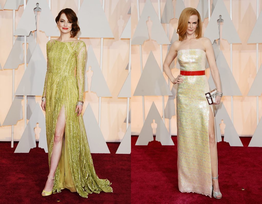 Un color que aún no ha sido catalogado, a caballo entre el amarillo y el verde lima, con muchos brillos y lentejuelas, así lucieron las actrices: