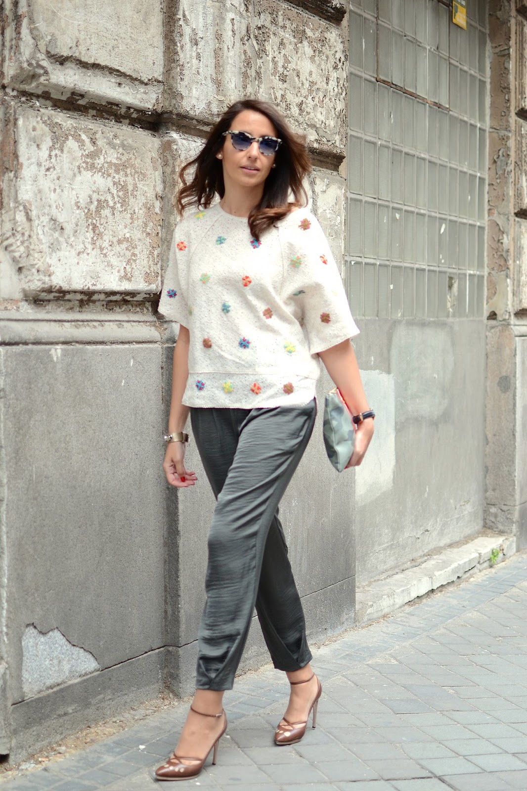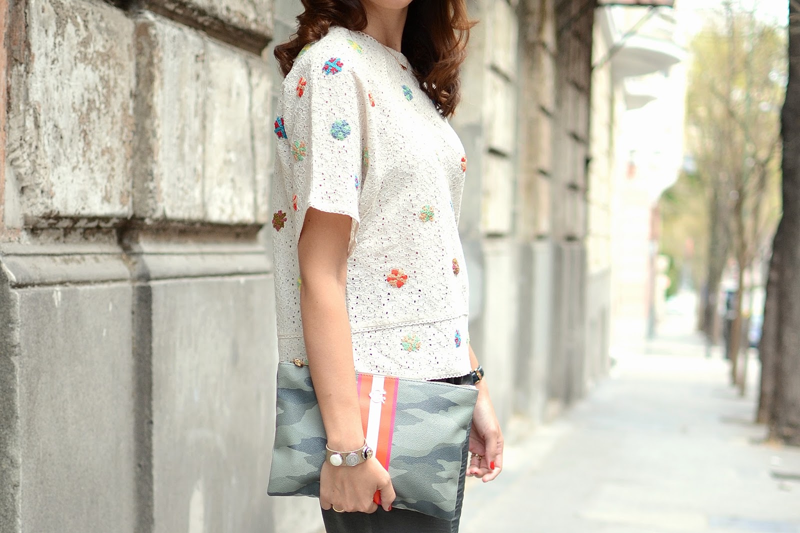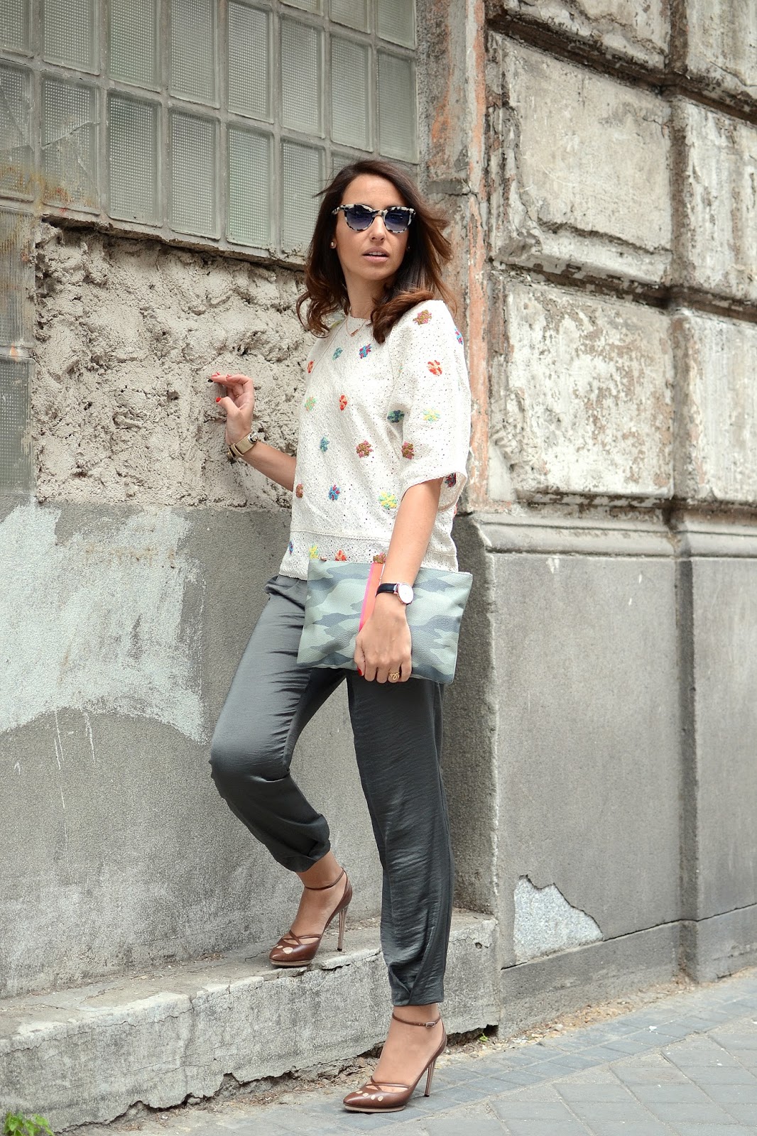 En el post de hoy os enseño un total look de Hoss Intropía que podéis encontrar en Cool The Sack. Llevo un top caladito con detalles bordados de colores, muy primaveral. Lo he combinado con unos pantalones de seda fluidos con un cinturón muy original. Los zapatos son unos Yves Saint Laurent que compré hace unos años en Nueva York. Para completar el look unas gafas de Massada que podéis encontrar en Optichic, y un bolso en los mismos tonos de Bloomingsdale.