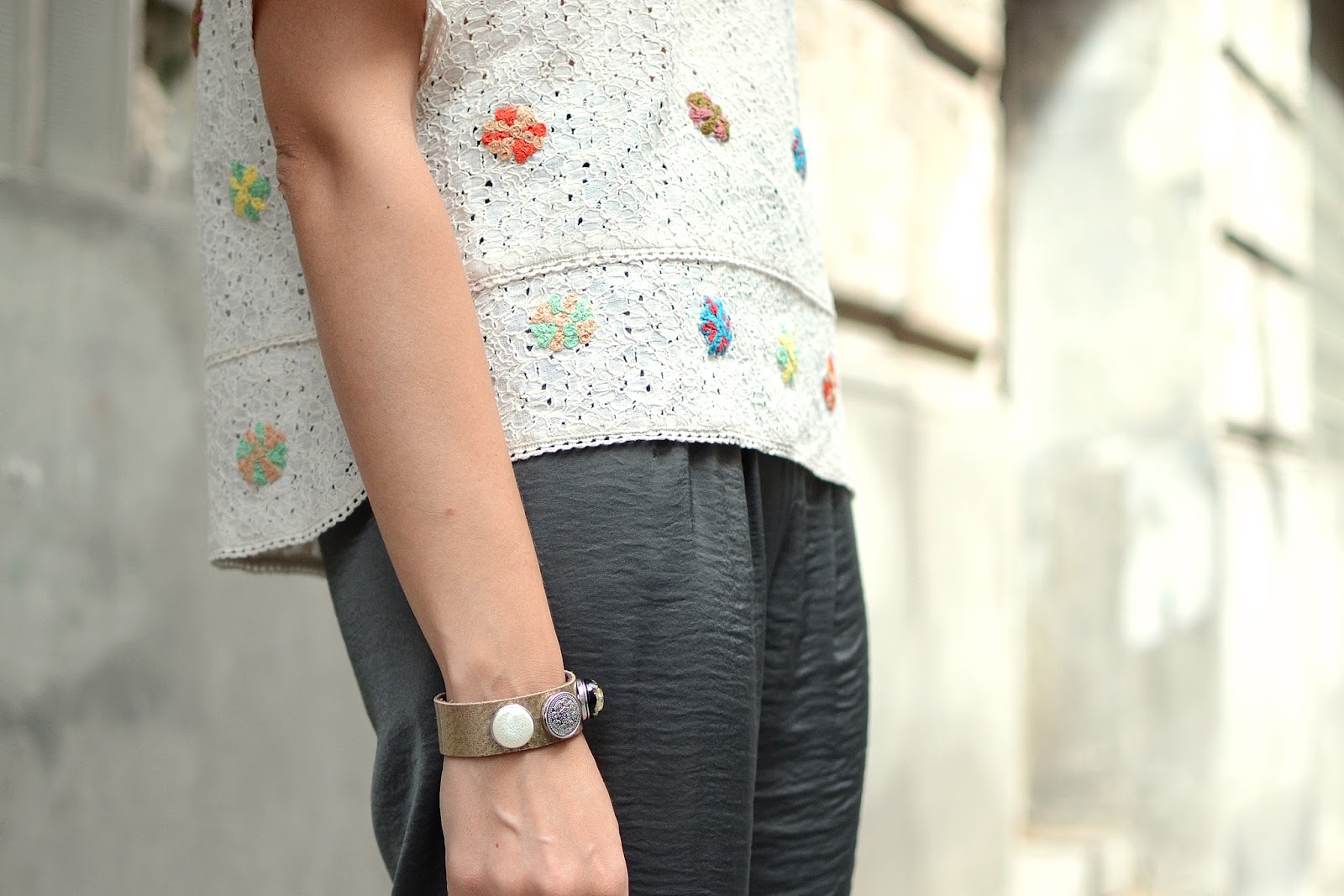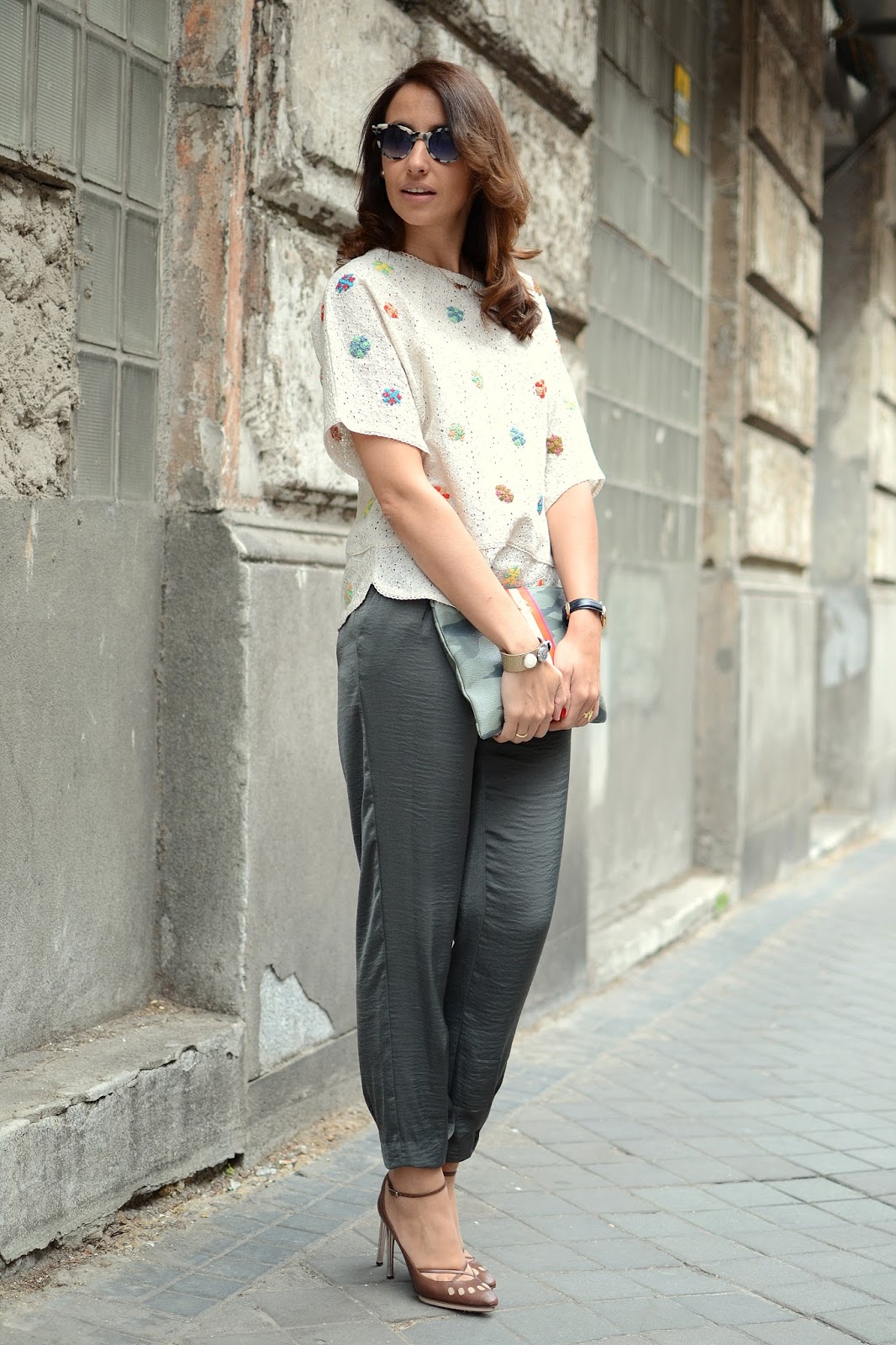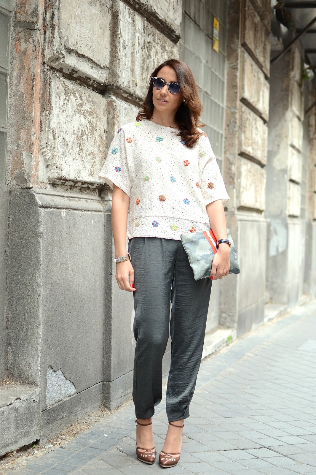 En el post de hoy os enseño un total look de Hoss Intropía que podéis encontrar en Cool The Sack. Llevo un top caladito con detalles bordados de colores, muy primaveral. Lo he combinado con unos pantalones de seda fluidos con un cinturón muy original. Los zapatos son unos Yves Saint Laurent que compré hace unos años en Nueva York. Para completar el look unas gafas de Massada que podéis encontrar en Optichic, y un bolso en los mismos tonos de Bloomingsdale.