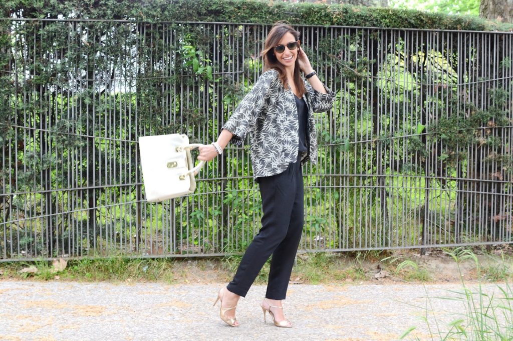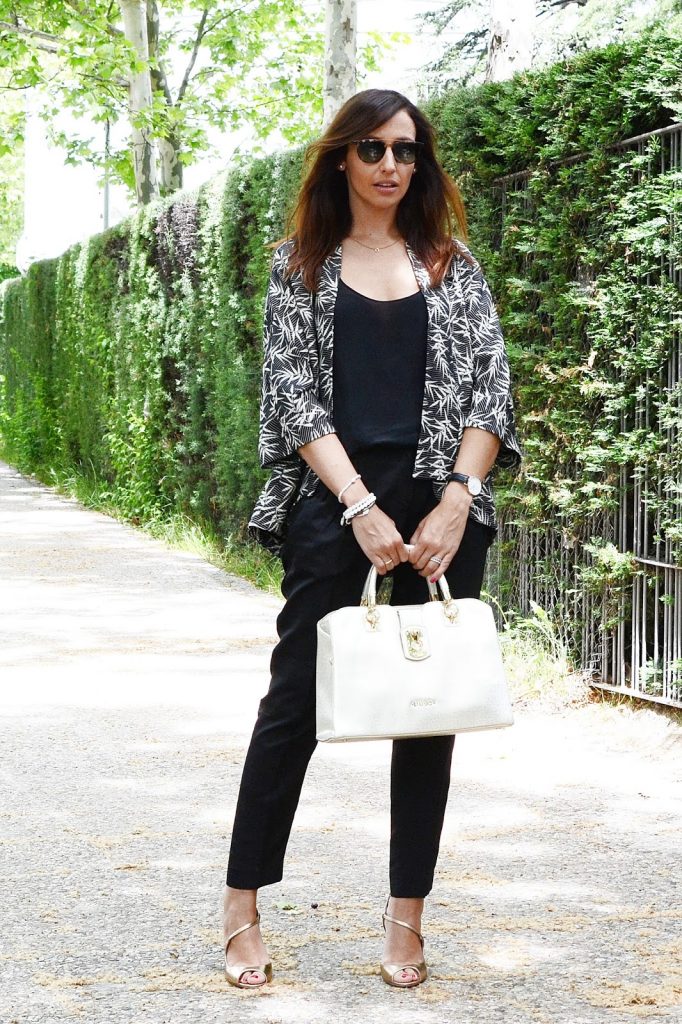 El look que elegí fue en tonos Black & White. Llevé un pantalón y top negro de seda, de Massimo Dutti, algo muy neutro que combinara a la perfección con mi nuevo kimono de Zara. Desde hace varias temporadas, los kimonos se han convertido en una de las prendas estrellas de mi armario, me encantan! Y para completar mi look, no podía ser de otra manera, que con mi nuevo «It Bag» de Liu Jo, en el tono dorado que combinaban a la perfección con mis sandalias de L.K. Bennett. Las gafas de sol son uno de los últimos modelos de Etnia Barcelona que podréis encontrar en Optichic.