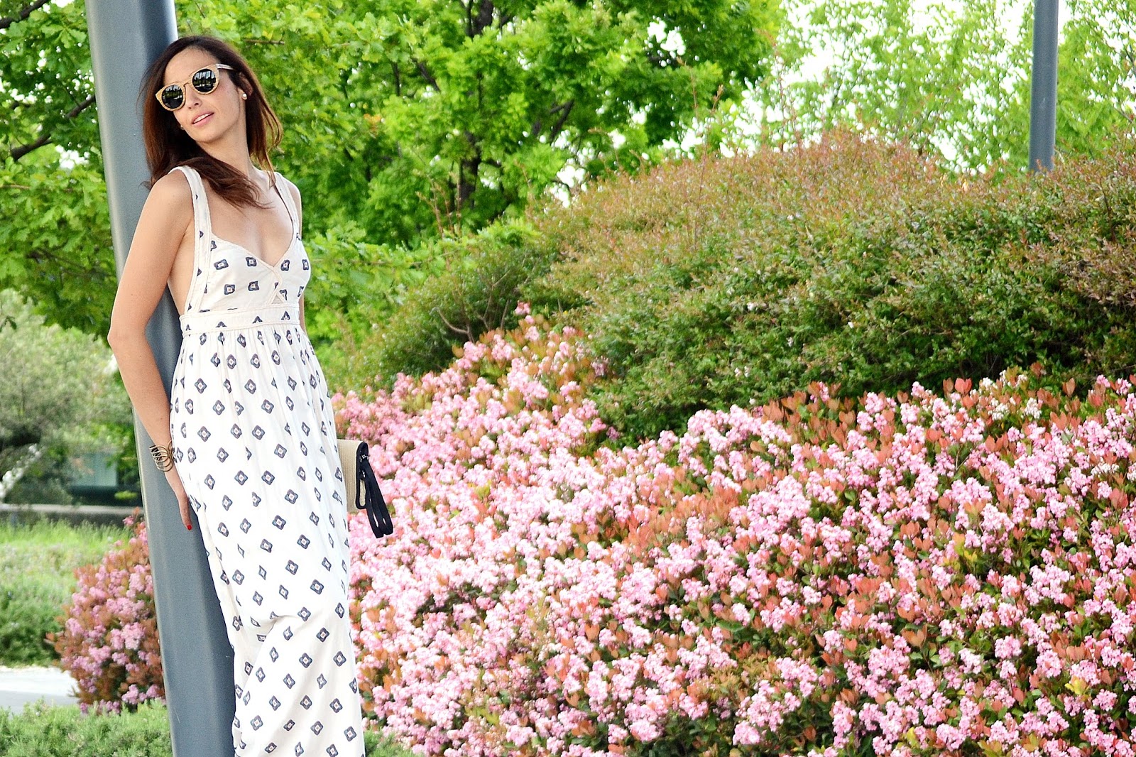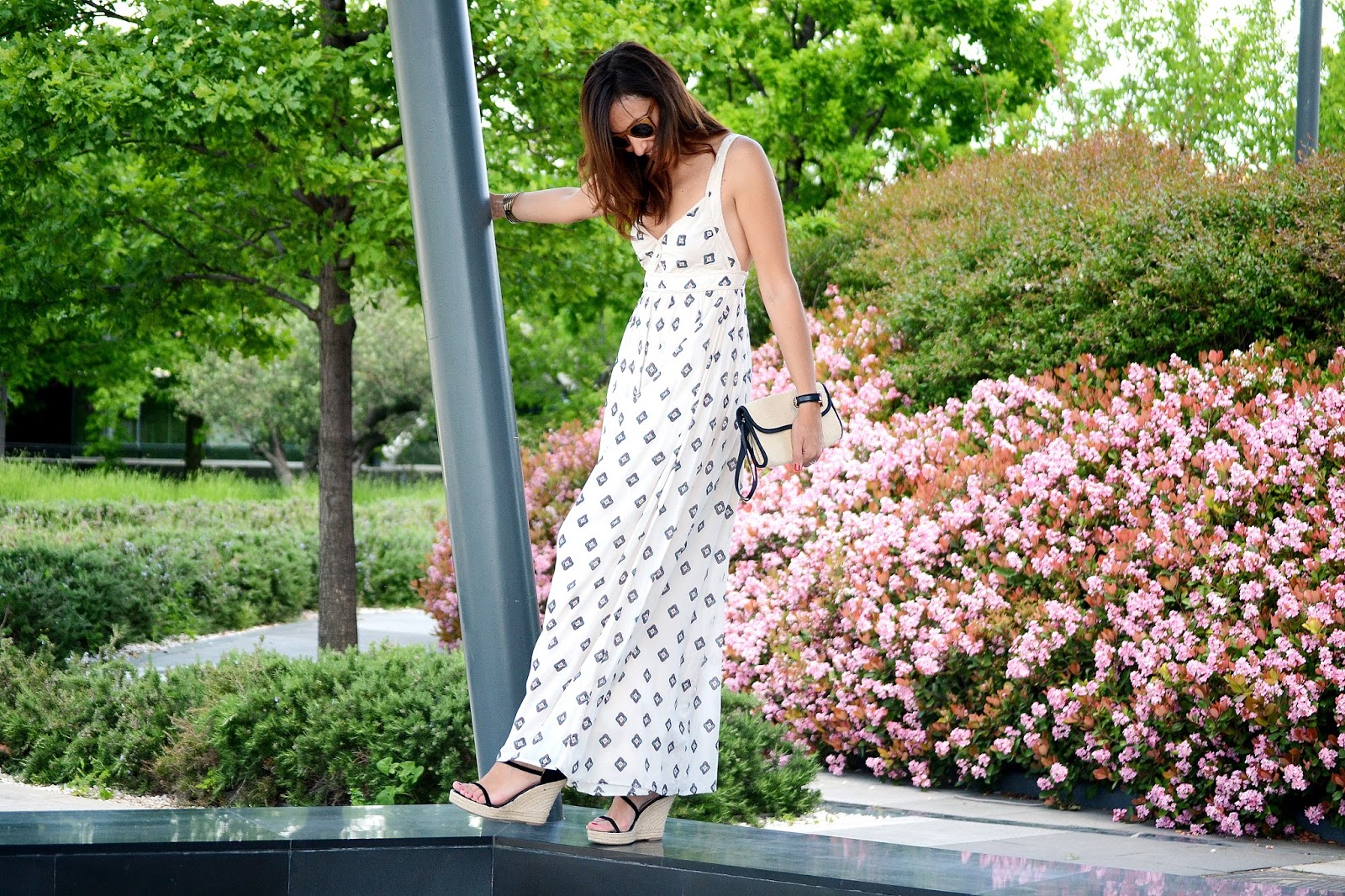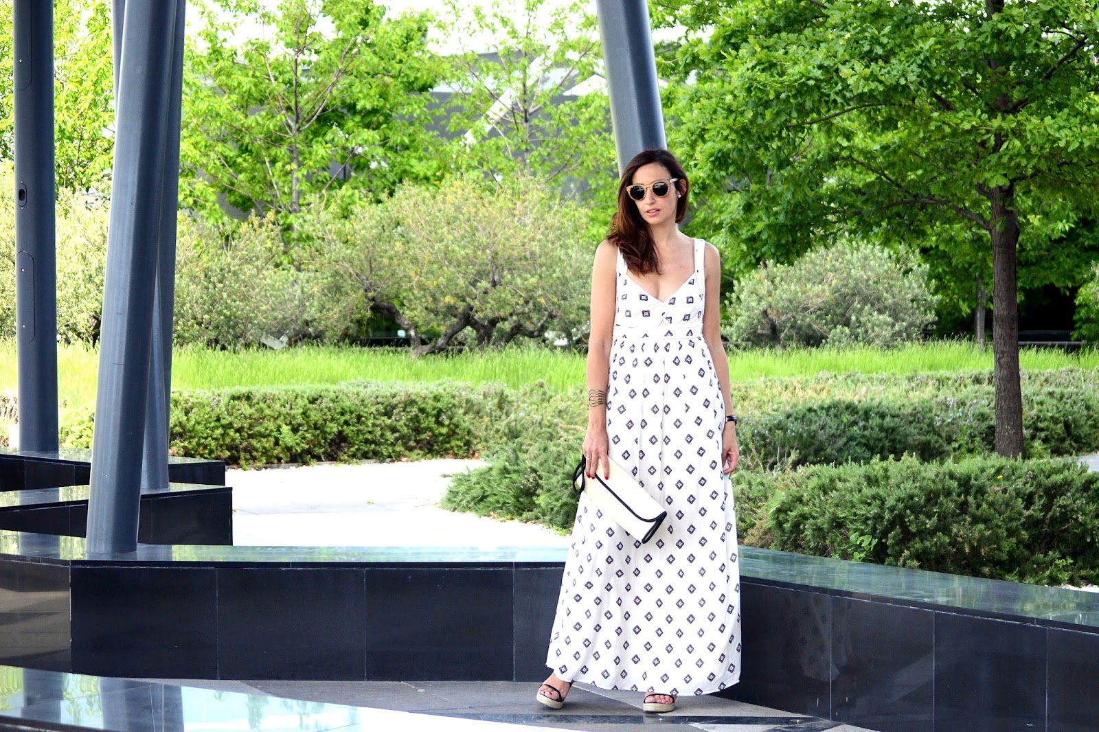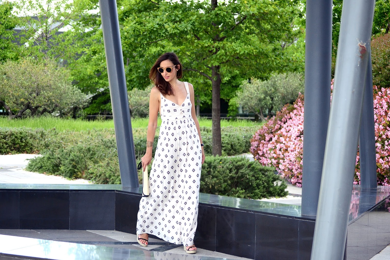 Normalmente, como ya sabréis, no suelo llevar vestido largos, no se realmente porque… ya que cuando los veo me encantan pero al final me decido por algo más corto. Pero hace unas semanas, en el mercadillo solidario de Hoss Intropia vi este y me enamoré. No pude resistirme, me lo probé y ya tenía que ser mío, ademas, con estos días tan calurosos que ha hecho me ha venido genial!