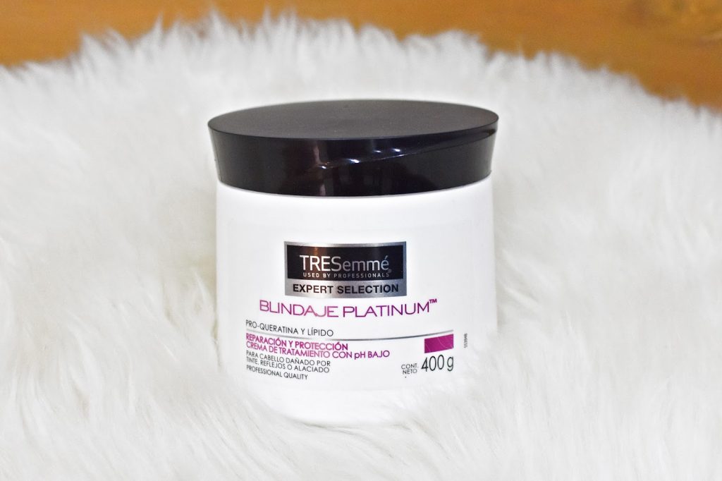 3. Crema de tratamiento Tresemmé Blindaje Platinum: Es un tratamiento intensivo de pH bajo que repara profundamente del cabello dañado por procesos como coloración, reflejos o alaciado, y da una protección extra a la fibra capilar. Su fórmula con Pro-Queratina y Lípido, repara la estructura de la fibra y sella las cutículas blindando el cabello y devolviendo la vitalidad, suavidad y brillo.