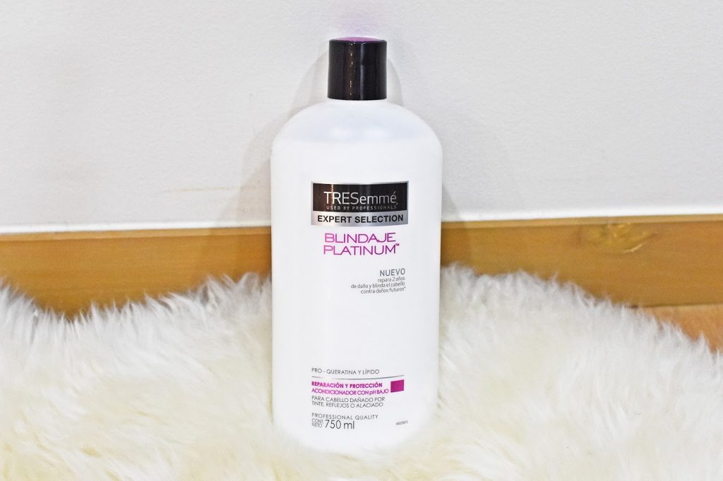 2. Acondicionador Tresemmé Blindaje Platinum: Al igual que el shampoo, protege y repara el cabello dañado devolviendo la vitalidad perdida de la fibra químicamente tratada por coloración, reflejos o alaciado. Su fórmula con Pro-Queratina y Lípido, repara la estructura de la fibra y sella la cutícula blindando el cabello.
