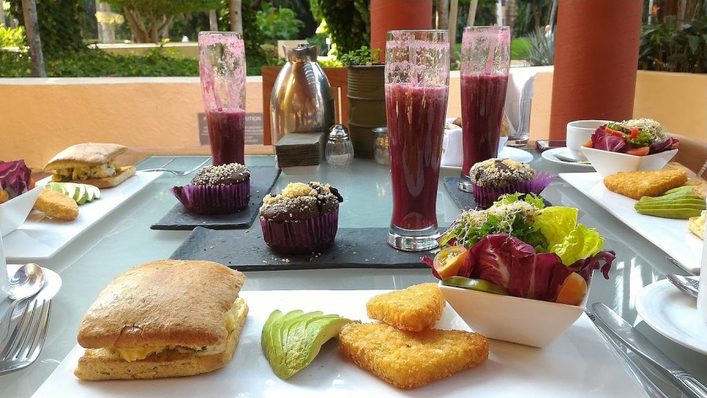 Luego fuimos a desayunar, al restaurante El Palmar, uno de los desayunos superfood de Westin, que como ya os comentaba en el post de ayer, son super nutritivos y sobre todo ricos para llevar una vida sana y saludable. Este desayuno tenía algo de salmón con aguacate, un smoothie de frutos rojos y algunos cereales, una muffin de chocolate, un sandwich de claras con verduras y para terminar un yogurt con frutos y avena… riquísimo y para no comer en las próximas 8 horas 🙂