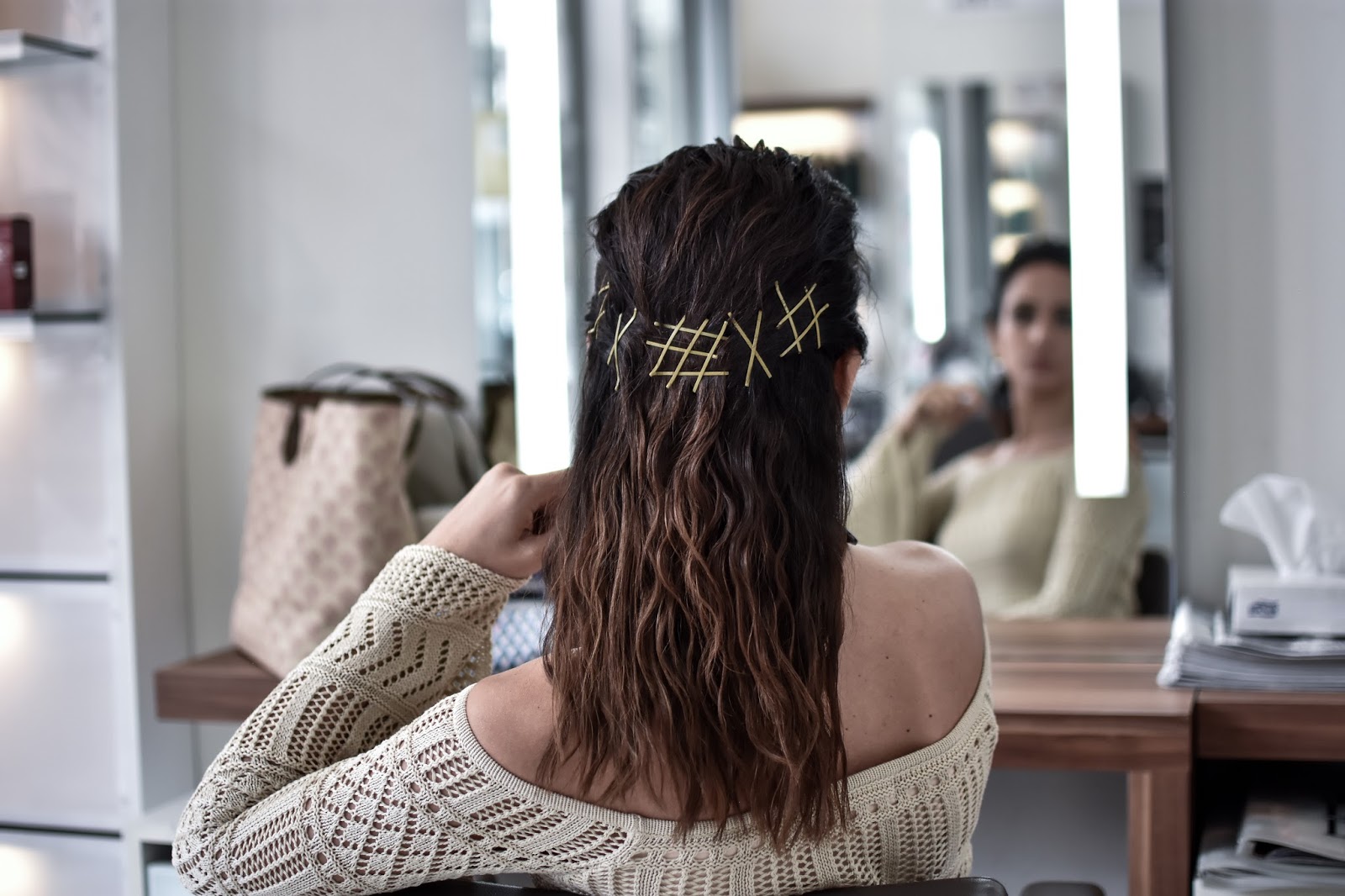 Estamos en plena época de BBC (bodas, bautizos, comuniones…) y seguro que tienes alguna, sino varias, elegiste el look, los zapatos, bolso pero aun tienes duda sobre el tocado, no sabes si por el día o la noche, si más grande o pequeño, si la gente lleva a o no… típicas preguntas que siempre nos hacemos jajajaja. O simplemente tienes un evento o cena con tus amigas y quieres ir diferente y espectacular. Pues después de haber pasado por todas las fashion weeks de Europa, una de las cosas que me ha llamado mucho la atención es que el pelo también es moda, suelto o recogido, con un lazo o sombrero… pero hay que hacer algo con él.Pues con esta idea fui a mi centro de confianza, a Jean Louis David en la C/Alberto Alcocer, 32 Madrid, les conté algo que había visto en París, ellos siempre me pillan la idea a la primera, y aquí tenéis el resultado. Un tocado sencillo pero no menos especial, hecho a base de horquillas, rápido de hacer y super original.