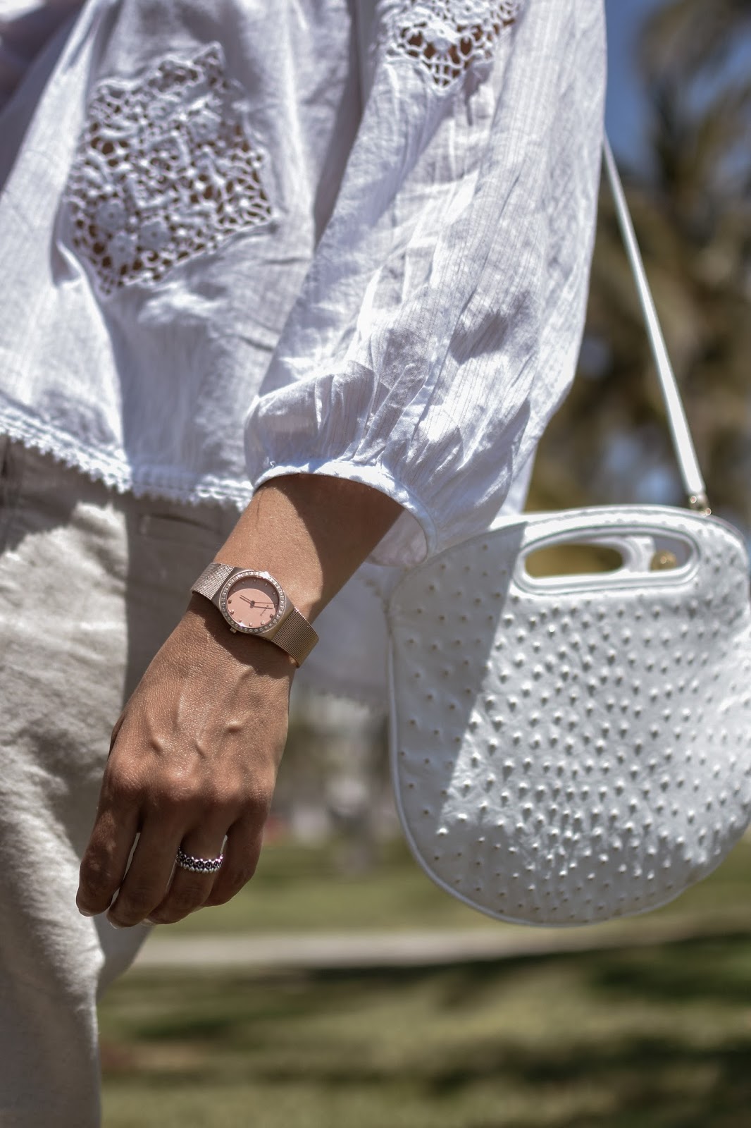 Con motivo del inminente Día de Internet, mi marca de relojes favorita, Bering, quiere celebrarlo con todos nosotros con una semana llena de descuentos, tanto en su web como en El Corte Inglés. Vais a encontrar descuentos del 30% en una serie de relojes de sus colecciones más icónicas, como este que llevo yo en el post de hoy, en color oro rosado con bisel decorado con Swarovski Elements, correa de malla de acero y cristal de zafiro. Toda una joya para no perder el tiempo en mis viajes.