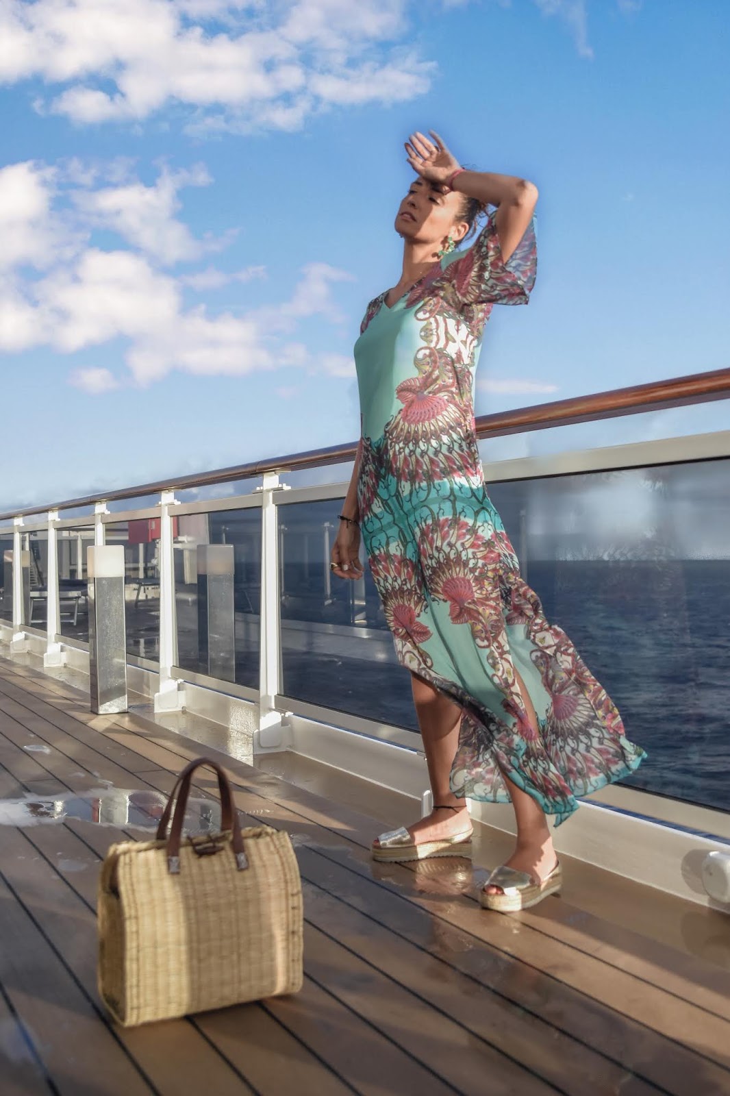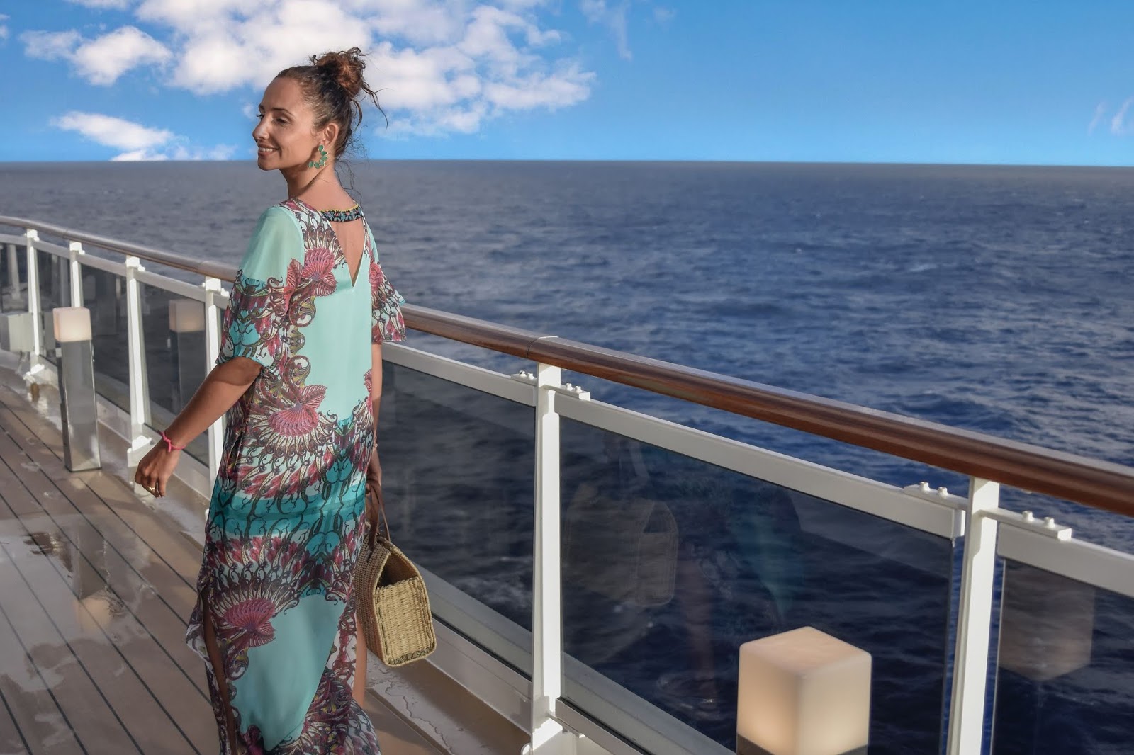 Seguro me vais a decir si es posible que aún tenga fotos del crucero con MSC Cruceros sin publicar y es cierto, aún tenía! Además creo que estas fotos son muy bonitas y merece la pena que las veais.Claro está, las hicimos una tarde en el barco y yo llevaba un precioso vestido de Custo Barcelona, largo, de seda, con la espalda descubierta y unos pendientes de Acus Complementos. El resto del look era un bolso y unas sandalias que ya me habéis visto en algún otro post